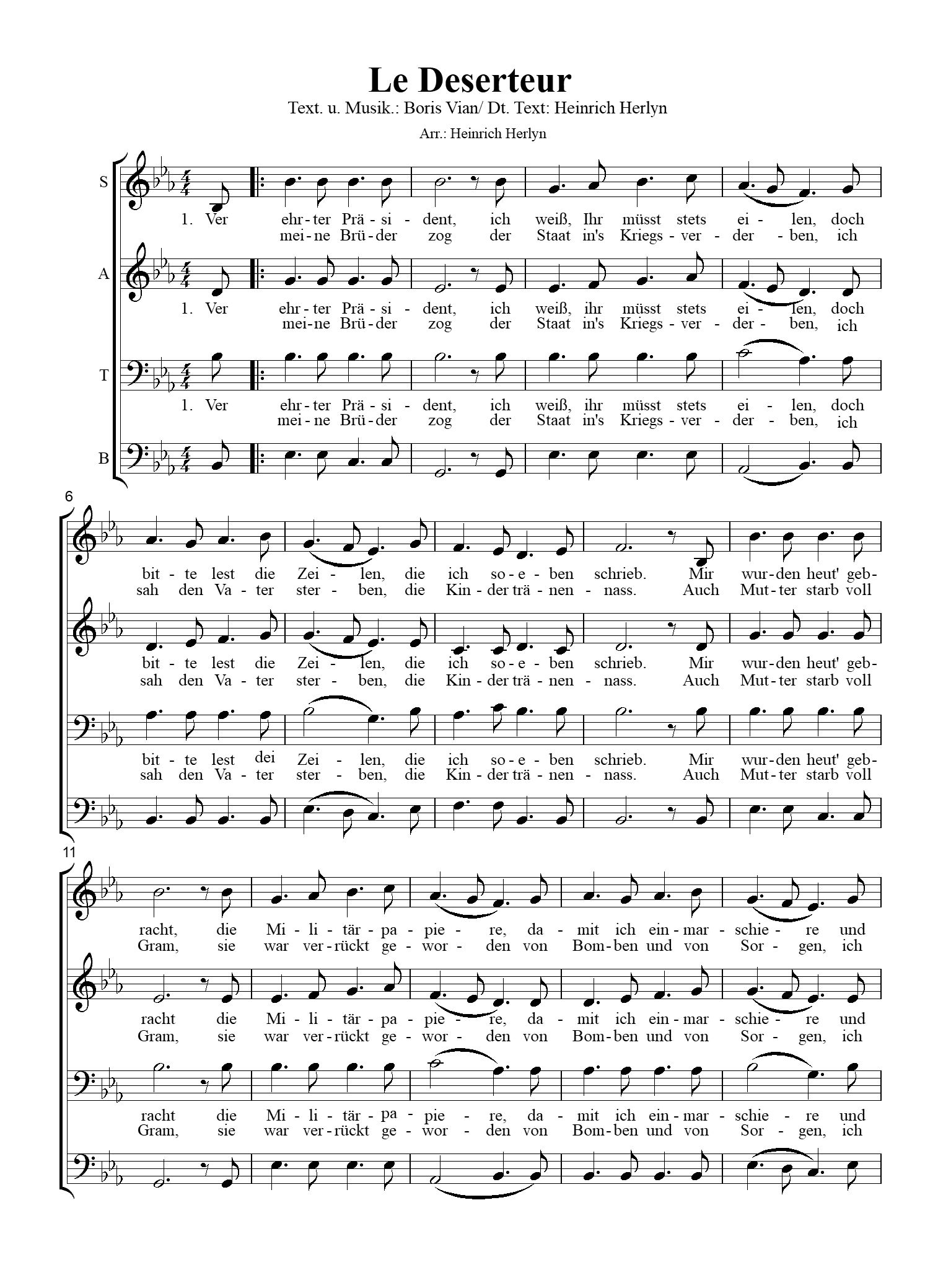 Le Deserteur | Boris Vian Dt. Text: H. Herlyn | Boris Vian | SATB | 5 | ||