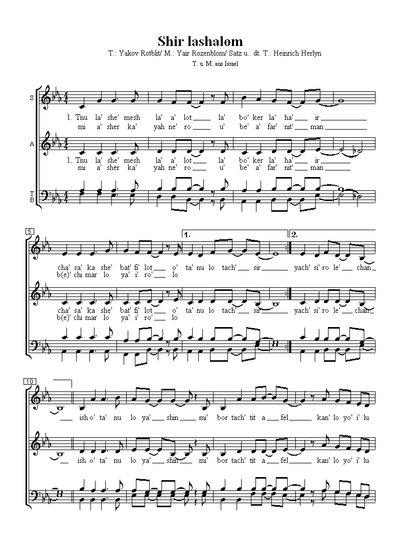 Shir lashalom | Dt. Text: Heinrich Herlyn | Yair Rozenblom | SATB | 4 | JPEG | Midi |
