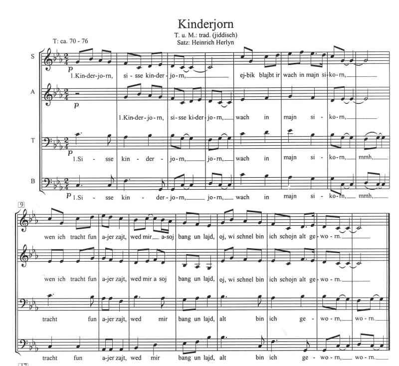 Chornoten und Chorarrangements von jiddischen Liedern vorzugsweise aus dem Widerstand gegen den Nationalsozialismus und aus den Ghettos Osteuropas