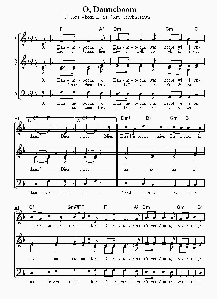 | O Danneboom | Greta Schoon | Heinrich Herlyn | SATB | 2 | ||